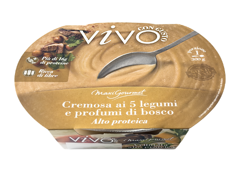 Vivo con gusto è una linea di vellutate funzionali: piatti pronti dal profilo nutrizionale definito, pensati per inserirsi con facilità nella routine quotidiana.